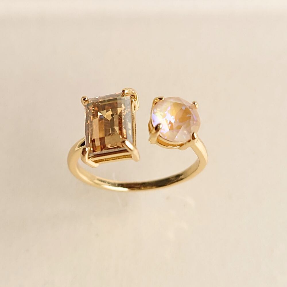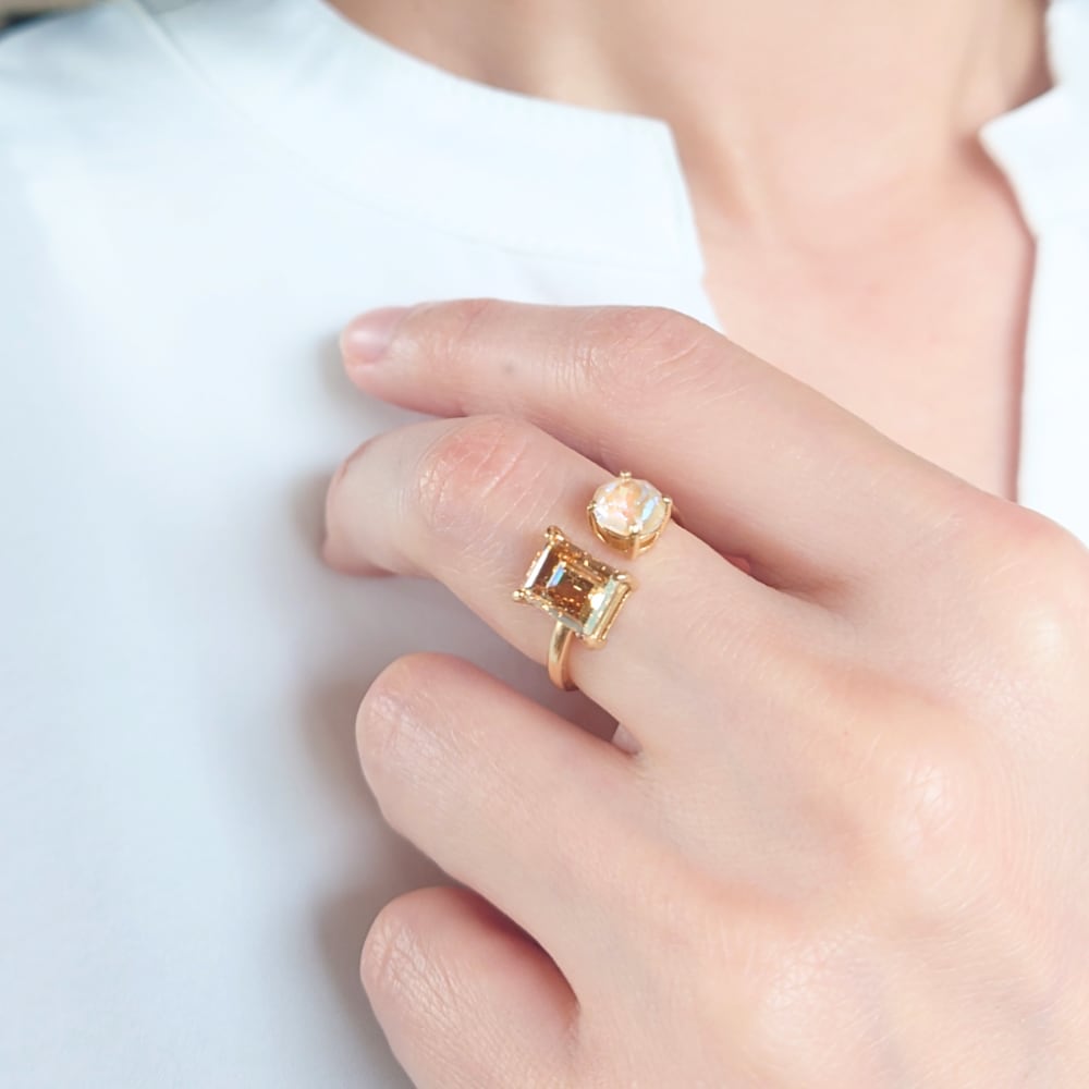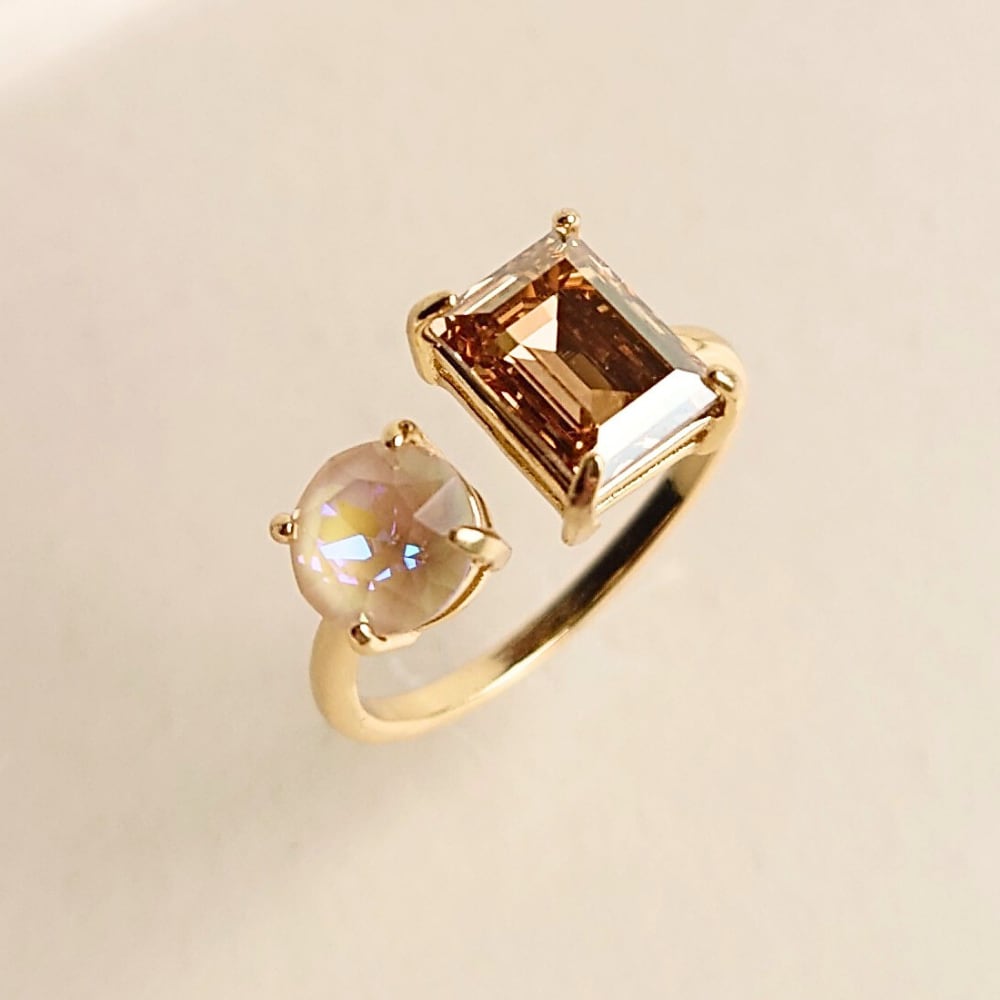 【サイズ調整可能 リング】ゴールデンシャドウ×アイボリークリーム ニッケルフリー ゴールド