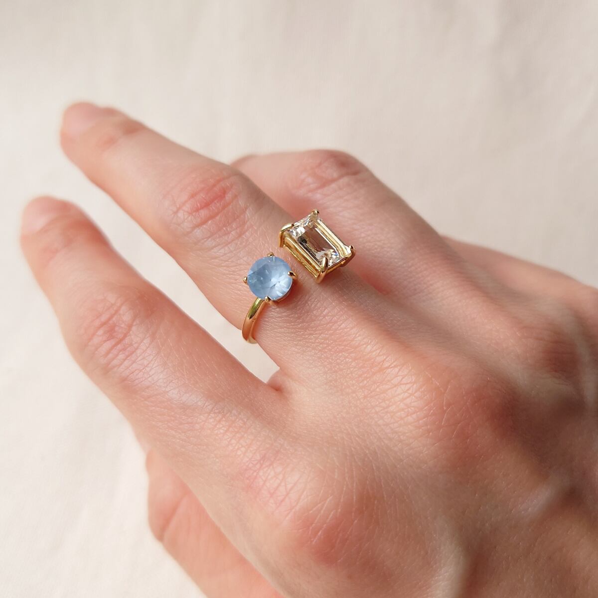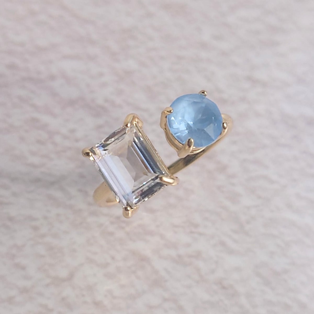 【サイズ調整可能 リング】フォークリング スカイブルー クリスタルイグナイト ニッケルフリー ゴールド