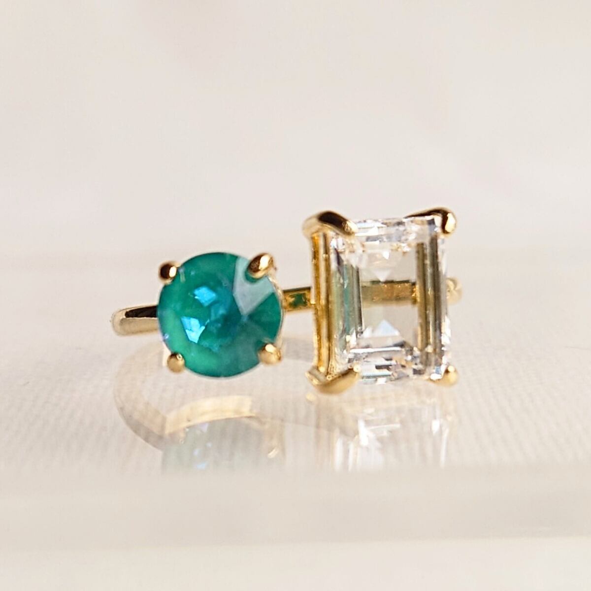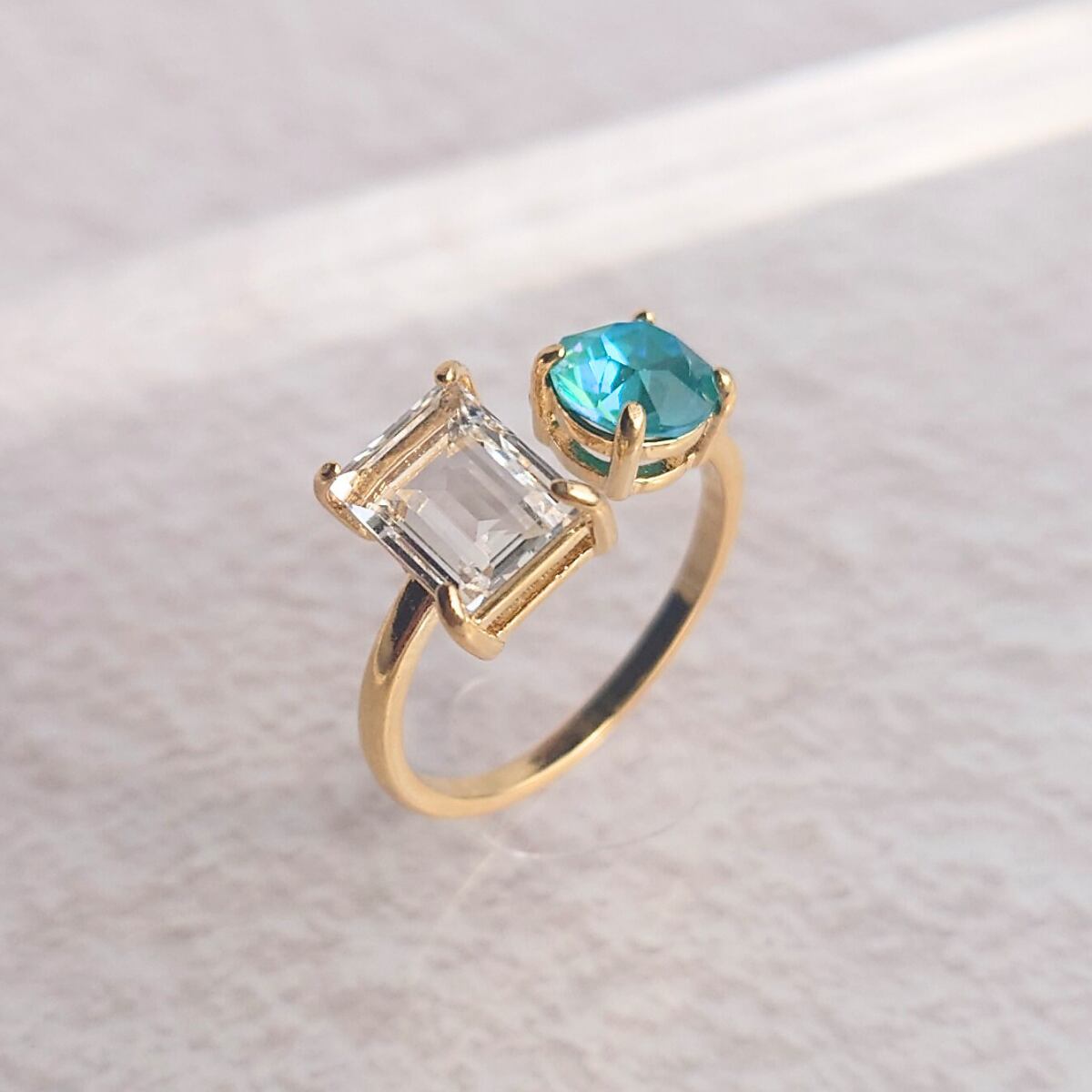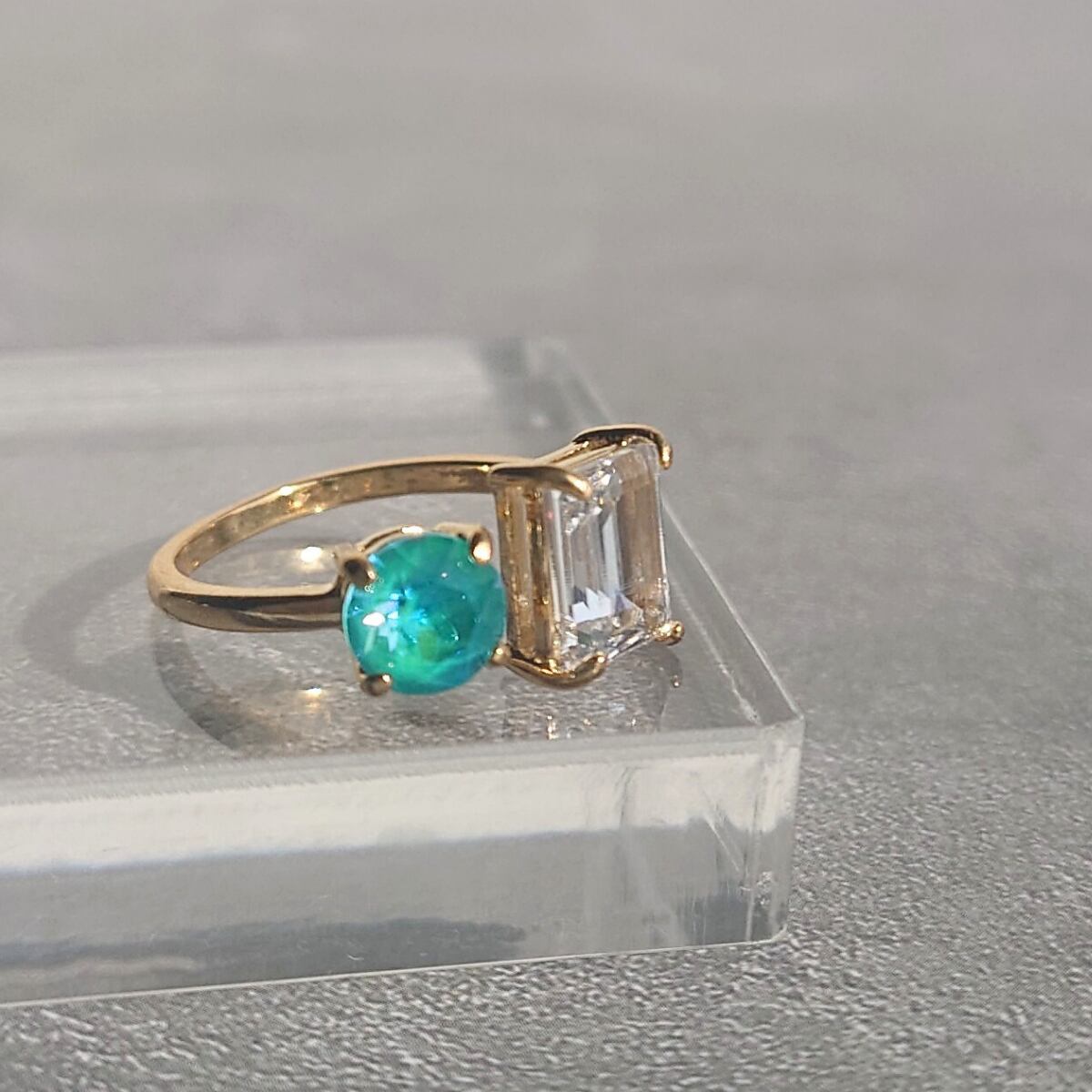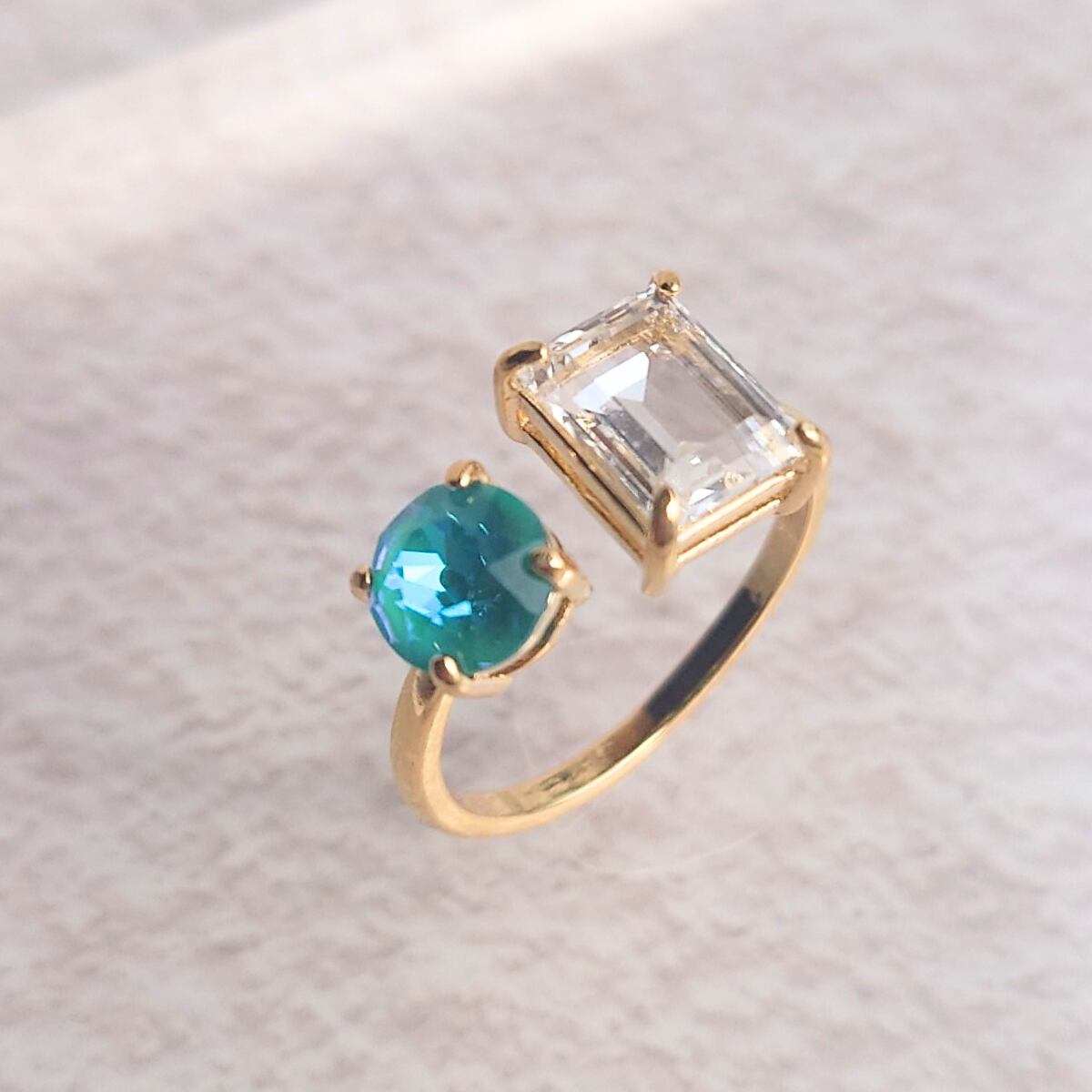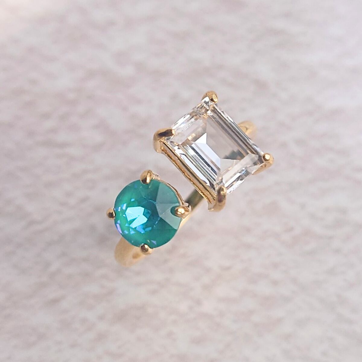 【サイズ調整可能 リング】フォークリング ラグーナディライト クリスタルイグナイト ニッケルフリー ゴールド
