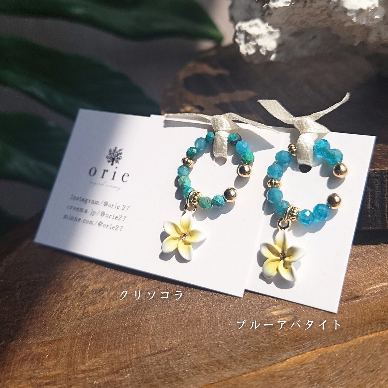 プルメリアと天然石(ブルーアパタイト)を組み合わせた