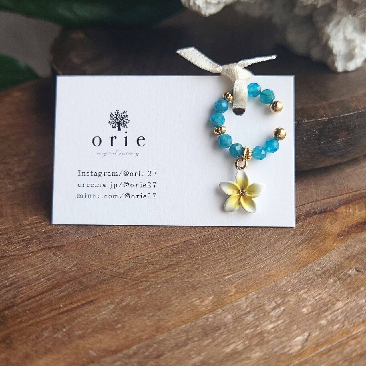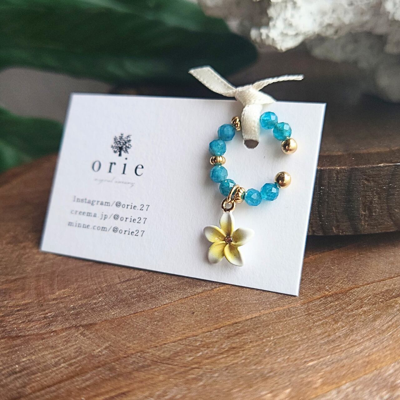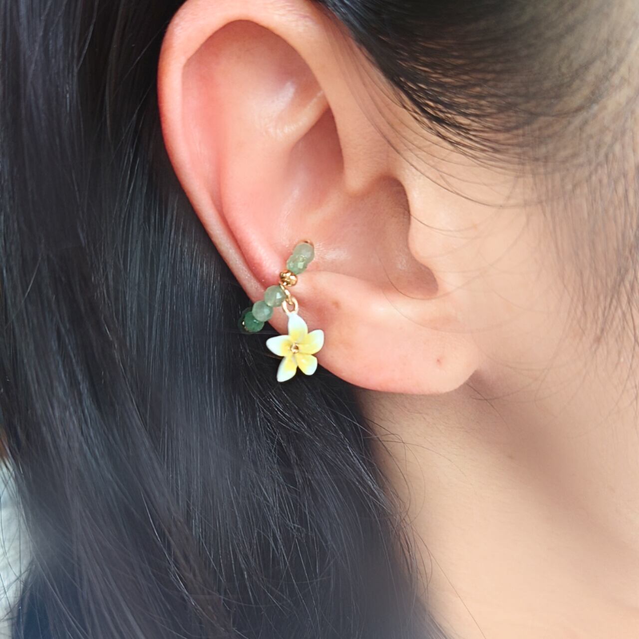 プルメリア×天然石(ブルーアパタイト)イヤーカフ