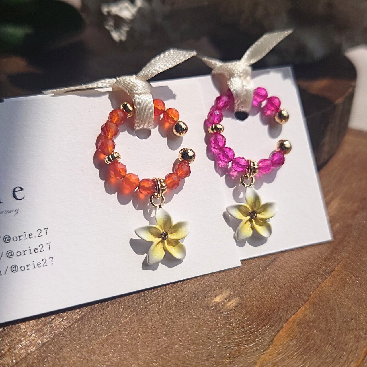 プルメリアと天然石(カーネリアン)を組み合わせた