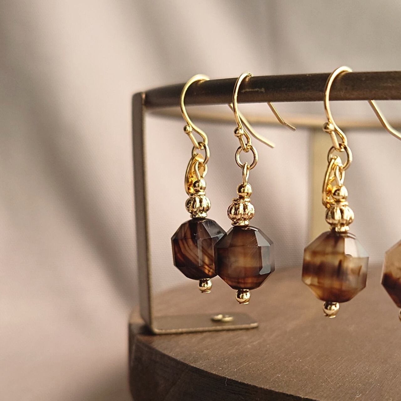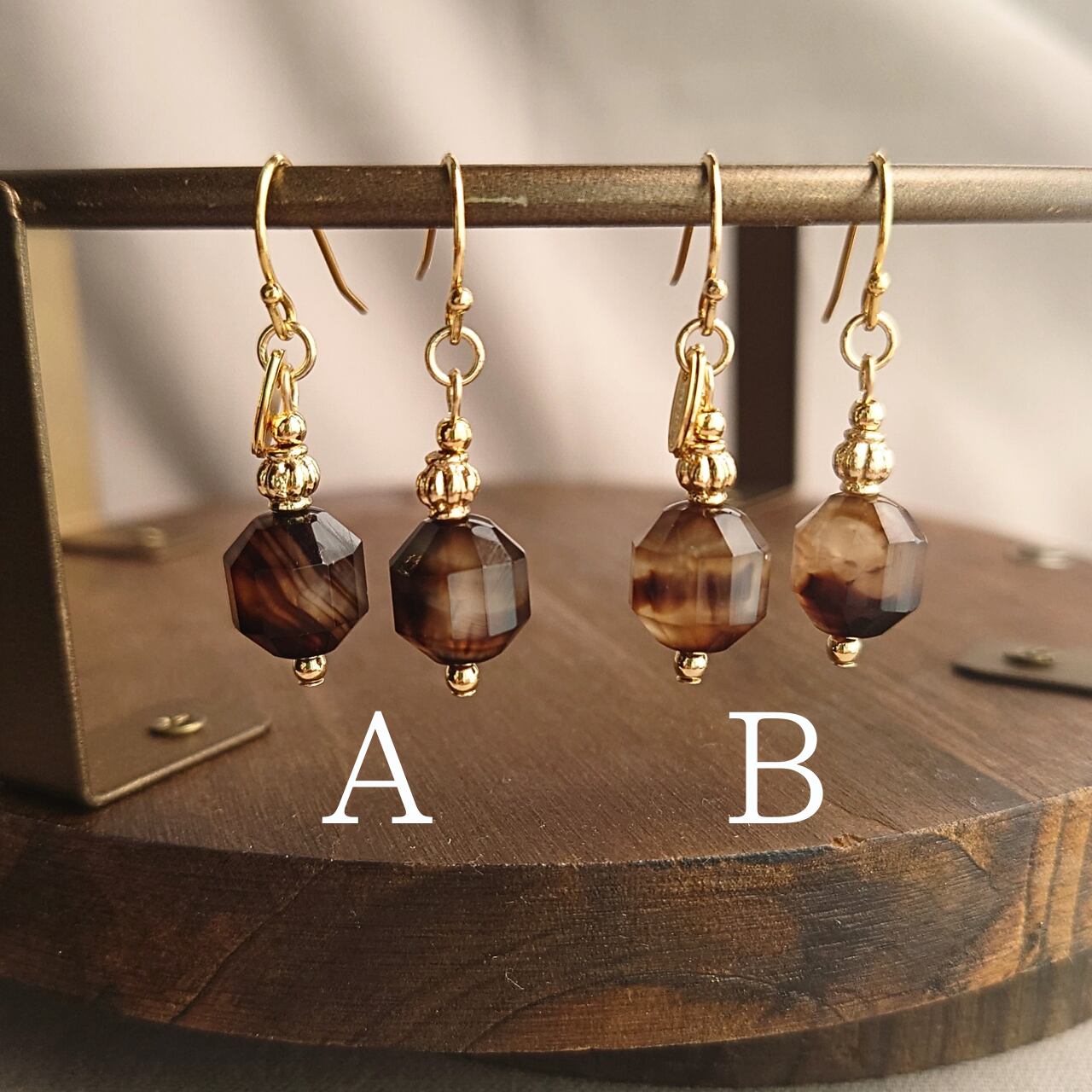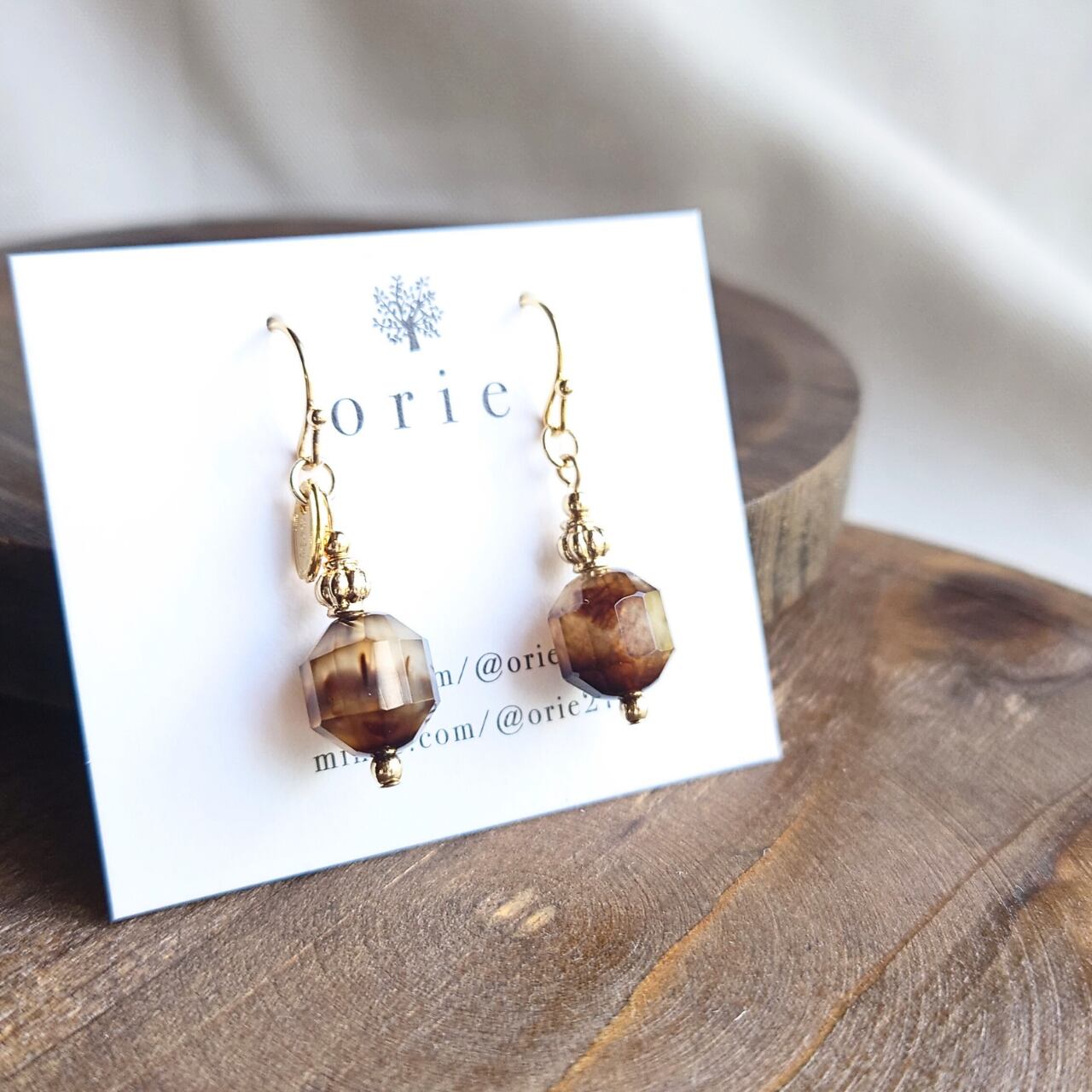 天然石【アゲート】を使用したこちらのピアス(イヤリング)