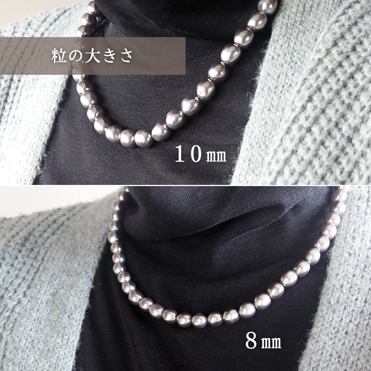 【short/10㎜粒】グレーパールネックレス 上品でモードな大人の輝き