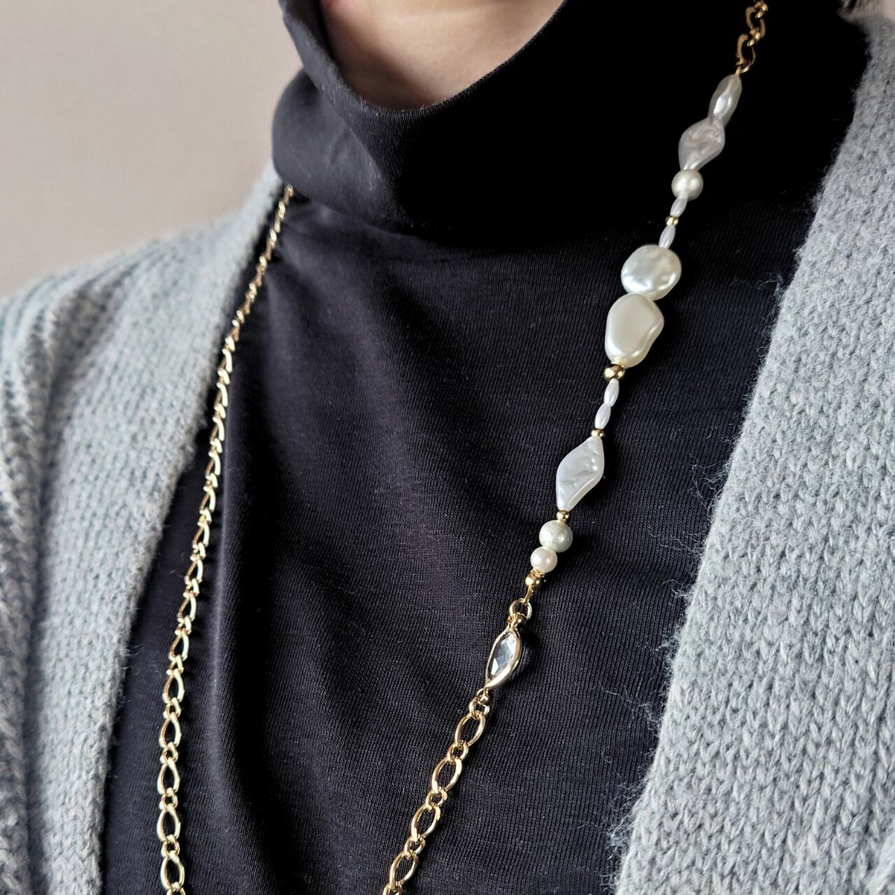 パール × Goldチェーン ネックレス|上品 華やか 大人コーデ アクセサリー
