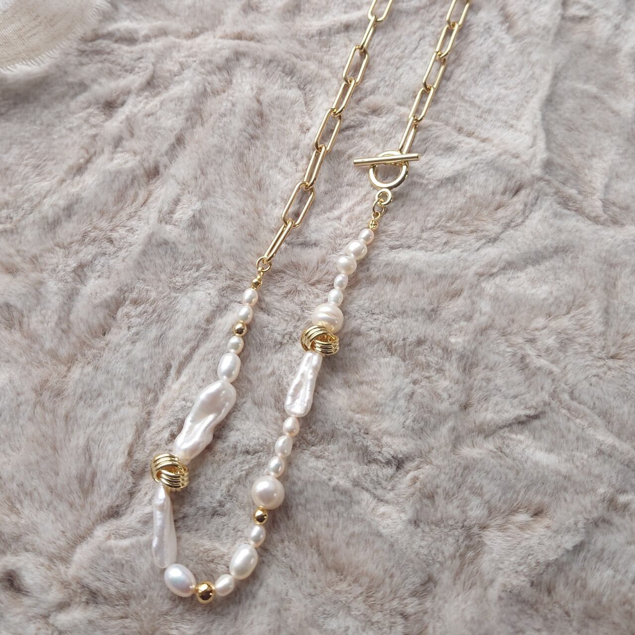 淡水パール × Goldチェーン ネックレス|上品 華やか 大人コーデ アクセサリー