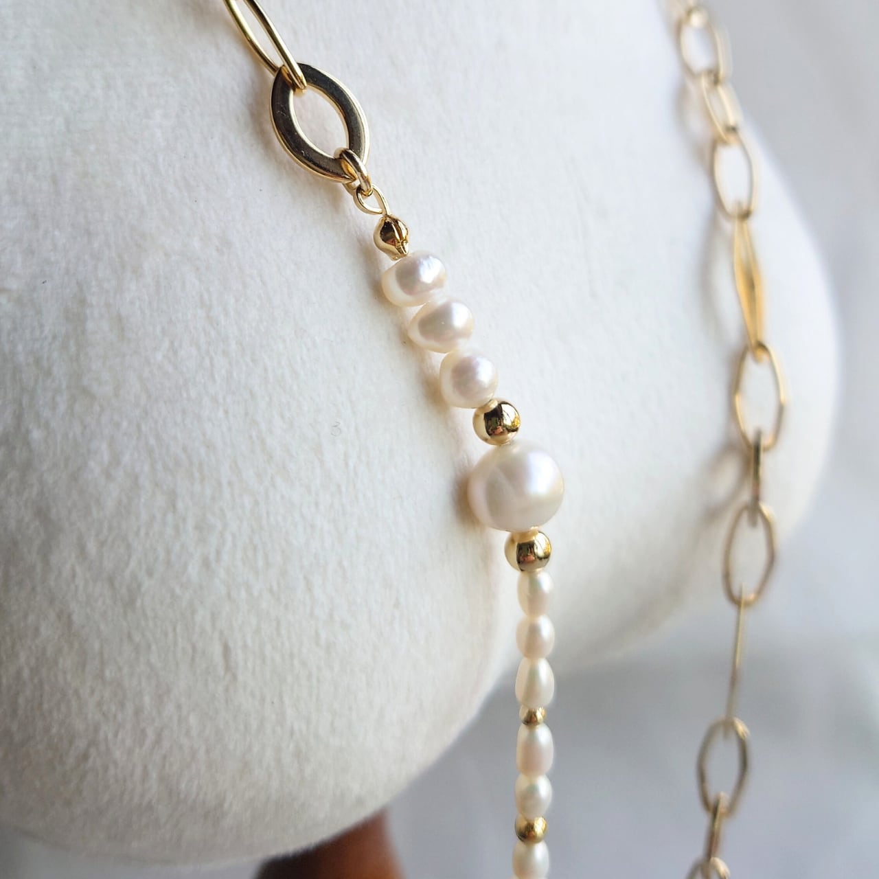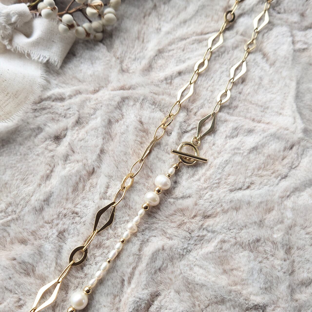 淡水パール × Goldチェーン ネックレス|上品 華やか 大人コーデ アクセサリー