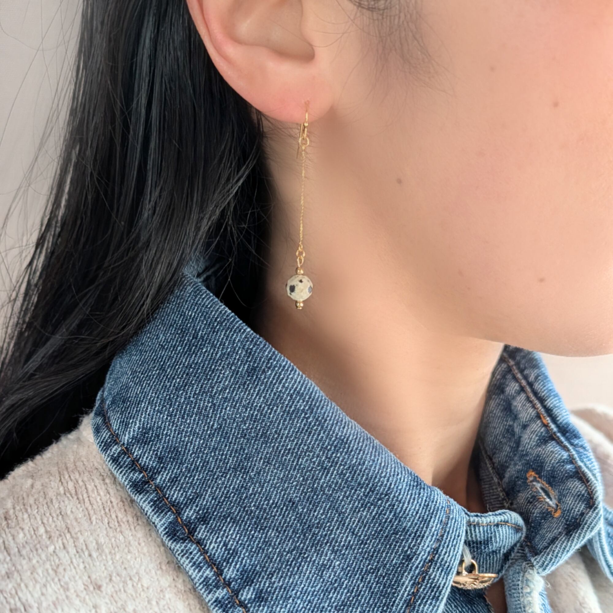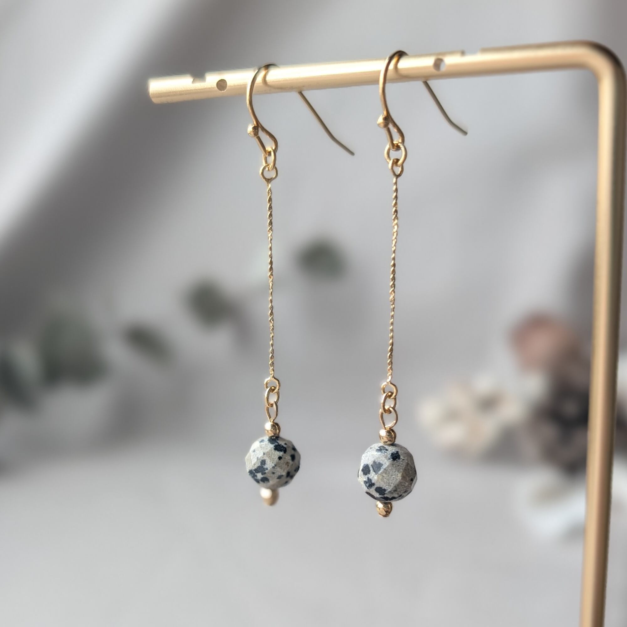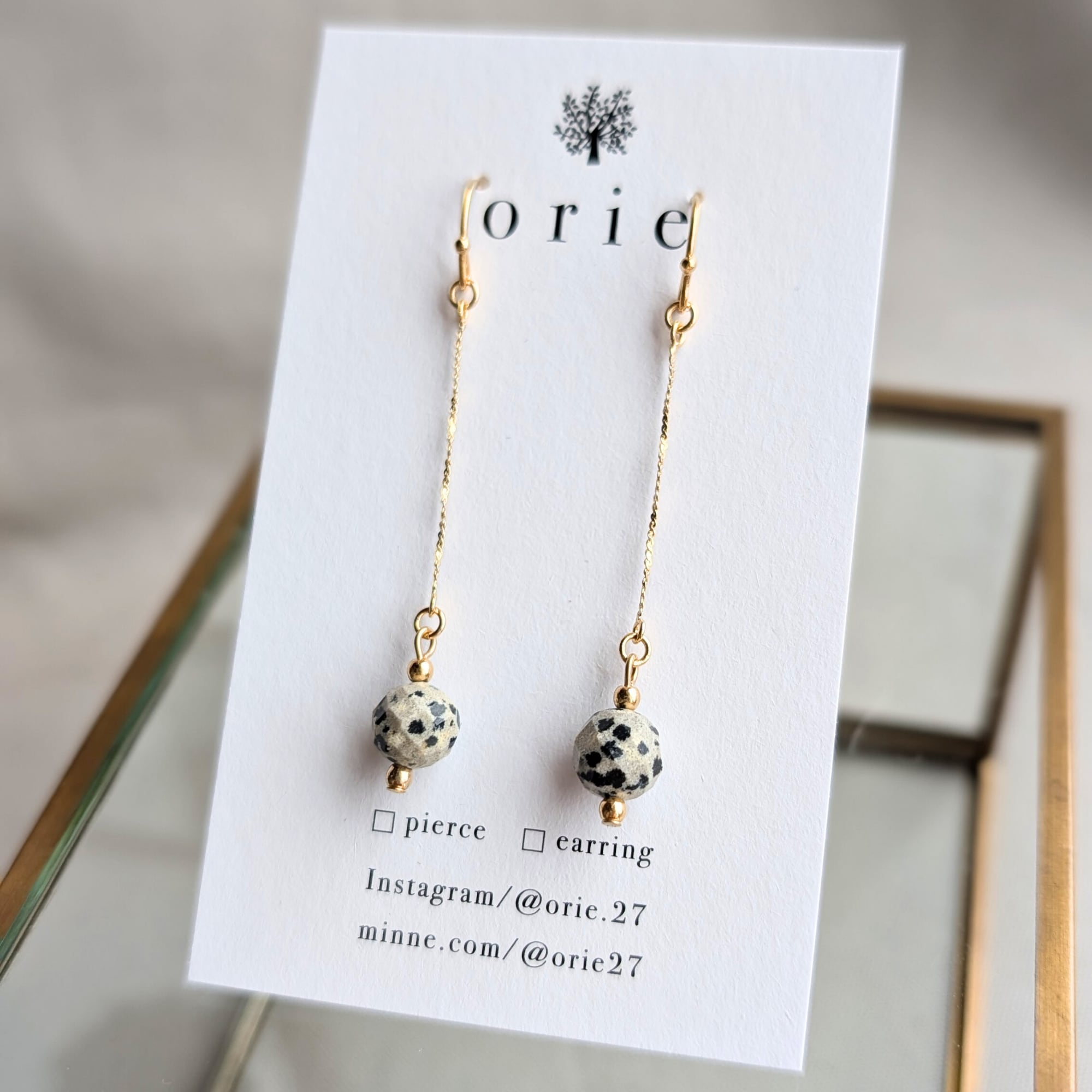 ダルメシアンジャスパー×繊細チェーンピアス/イヤリング