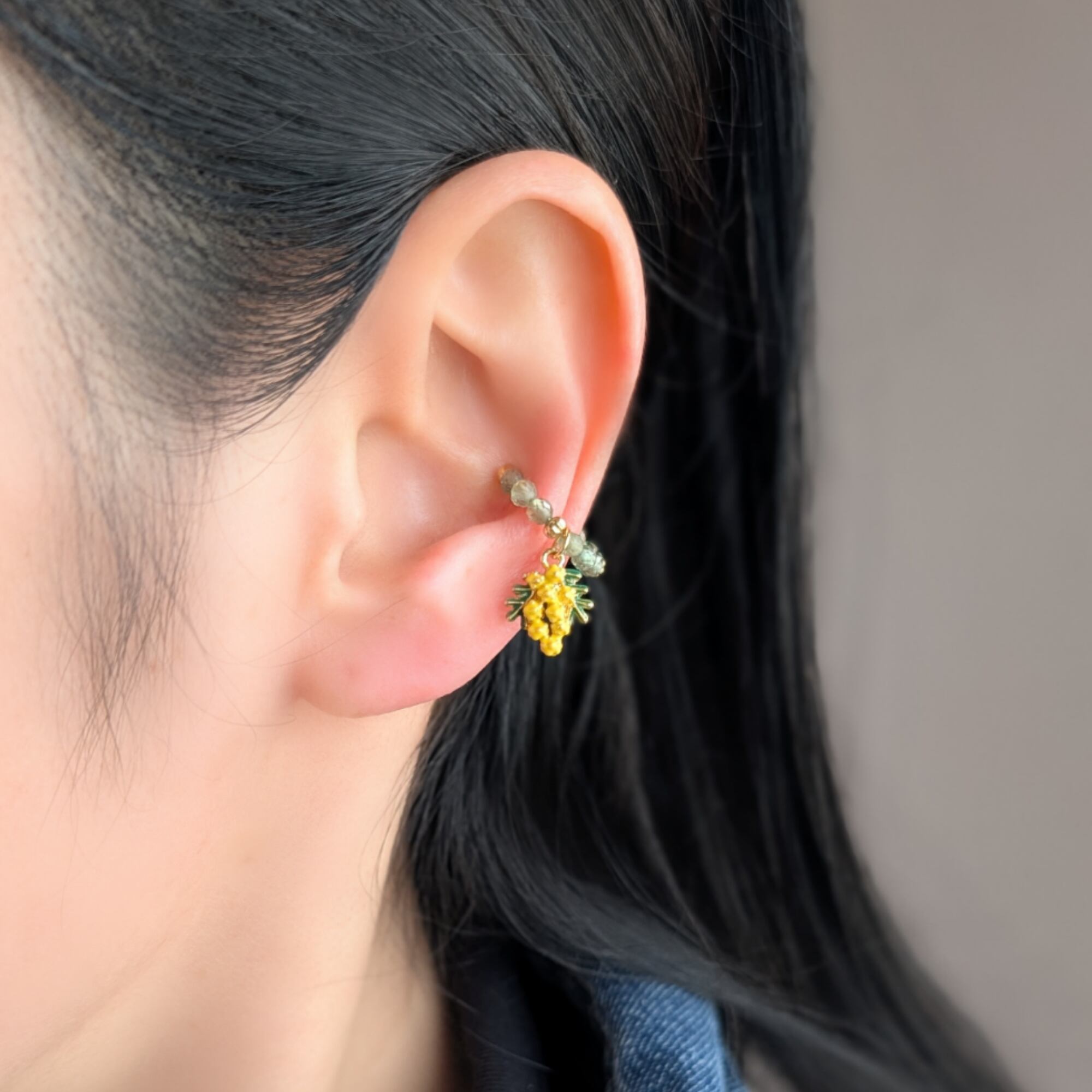 ミモザ イヤーカフ(グリーンアパタイト)